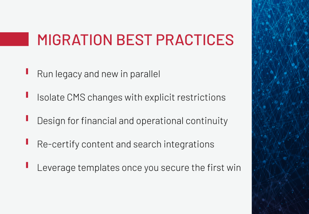 Before diving into migration, it’s worth pausing to confirm it’s truly what your system needs. A full-scale migration to headless or a simple stabilization phase can ripple through revenue, compliance, and innovation.